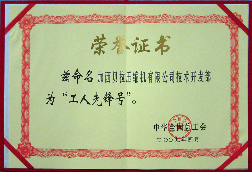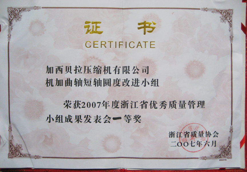 “jiaxipera ”牌壓縮機(jī)榮獲“中國名牌”稱號