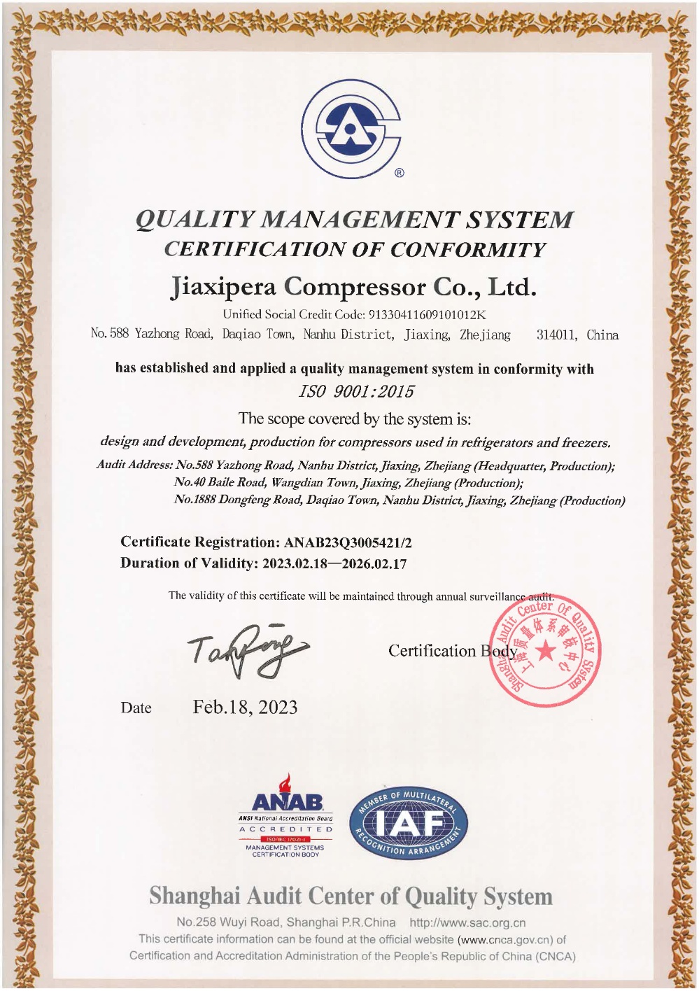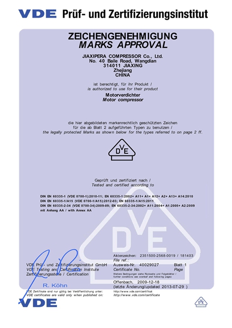 公司高效節(jié)能環(huán)保電冰箱壓縮機(jī)獲“浙江制造”認(rèn)證